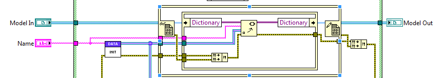 Then to access items we can update the item in the dictionary. Because we are using DVRs we actually only have to read the DVR back out and then we can update through the data class (which exposes a data write through a property node).